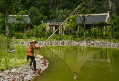 Disfrute de un tranquilo paseo en bote de bambú por Van Long, a menudo llamada la «joya escondida de Ninh Binh». Deslícese sobre aguas tranquilas, admire las montañas de piedra caliza y observe la fauna en esta apacible reserva natural.